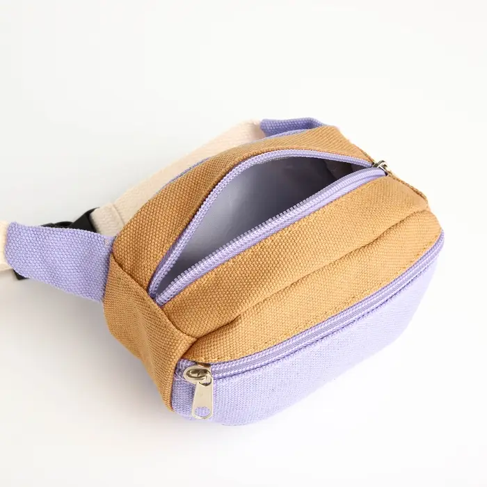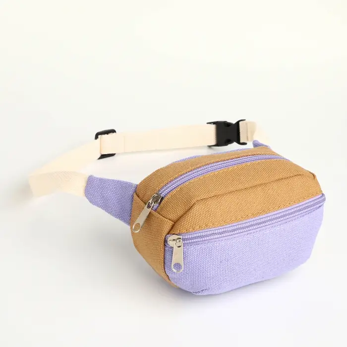 Сумка детская поясная на молнии, наружный карман, сиреневая, бежевая