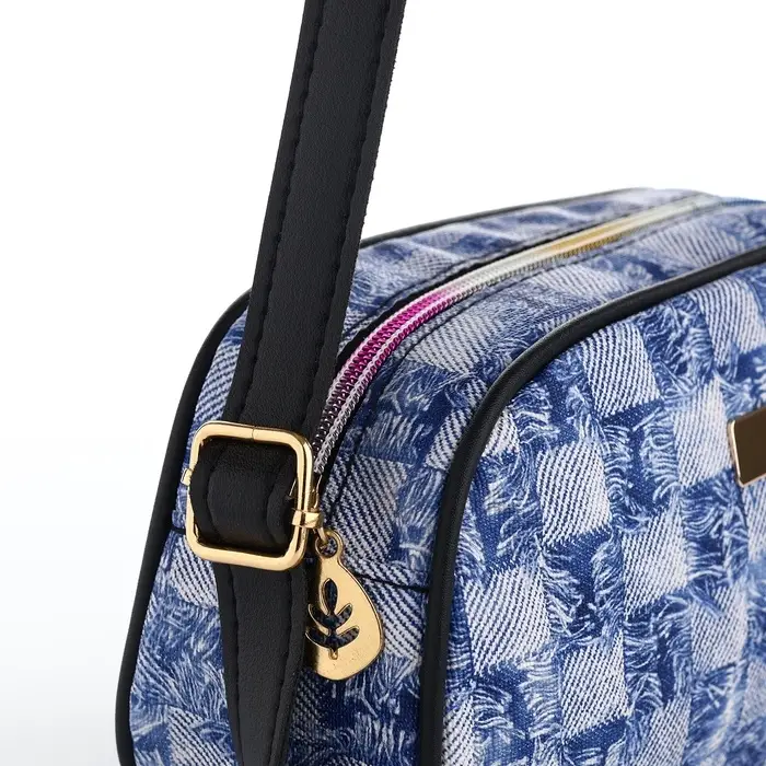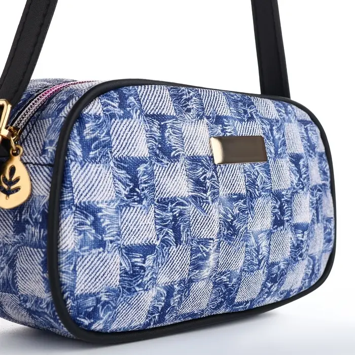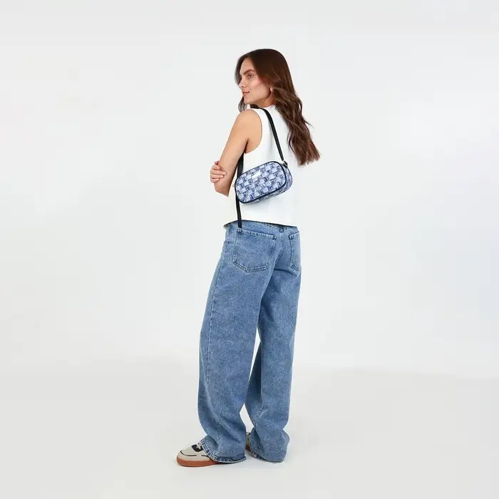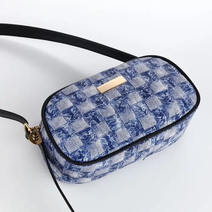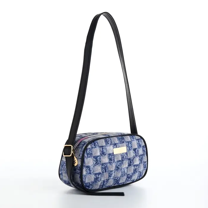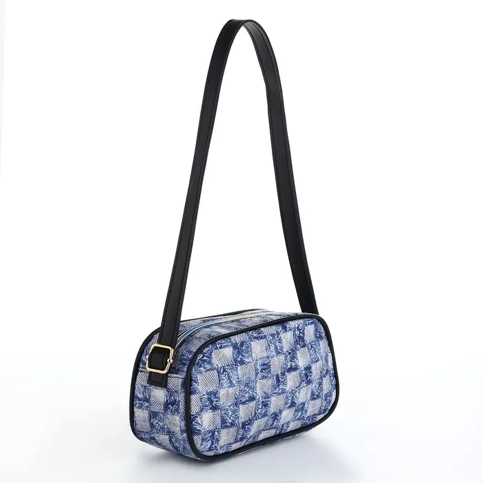 Сумка женская кросс-боди на молнии, 20.5×6.5×11.5 см, в клетку, синяя