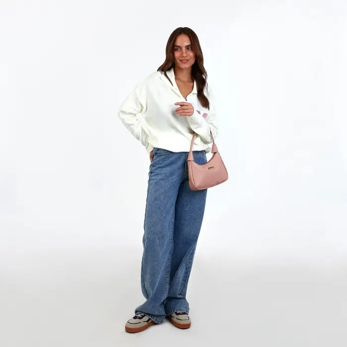 Сумка женская багет на молнии, 25×7×13.5 см, розовая