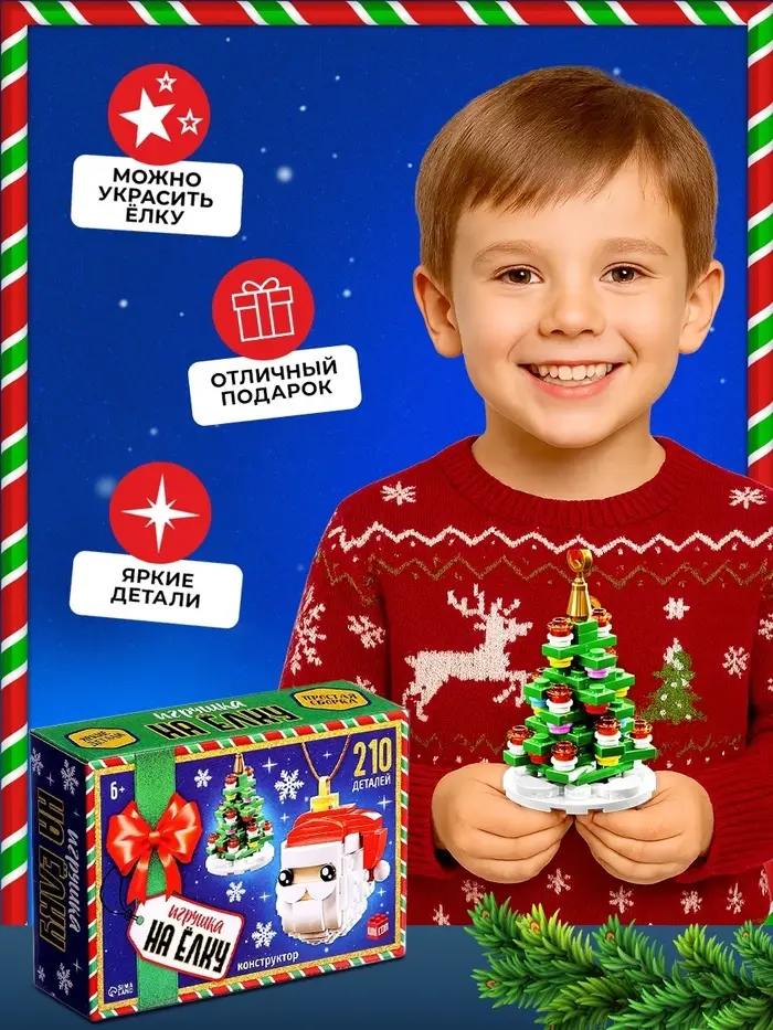 Конструктор новогодний «Игрушка на елку. Дед Мороз и елочка»— это увлекательный набор, который позволит создать оригинальные новогодние украшения своими руками. Состоит из 210 деталей, что делает сборку интересным занятием для детей от 6 лет и старше. Готовые игрушки украсят ёлку и добавят атмосферы праздника в дом. Отличный вариант подарка на Новый год для детей, любящих конструкторы.