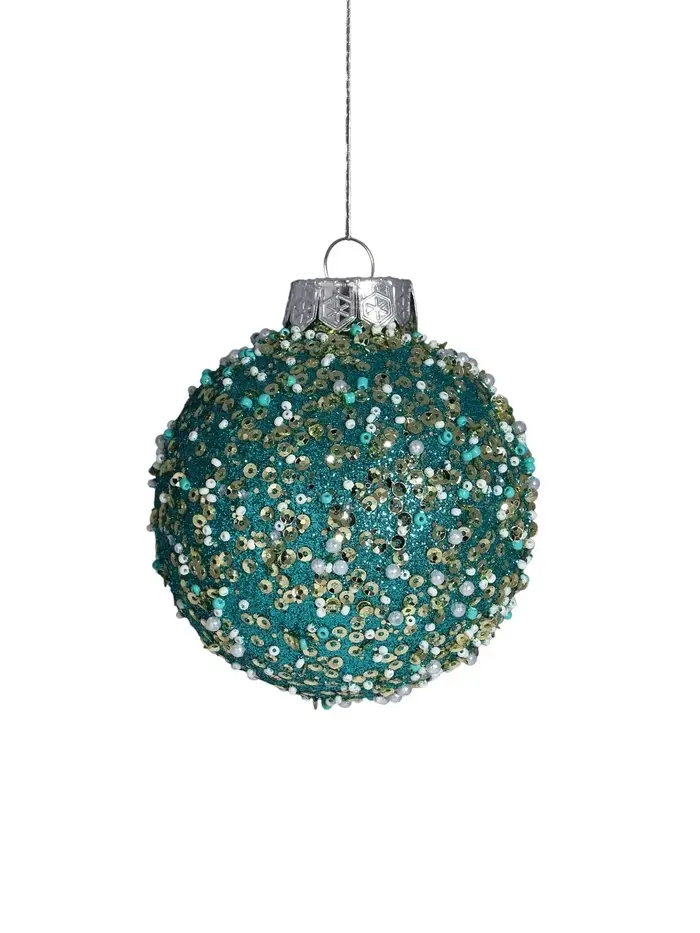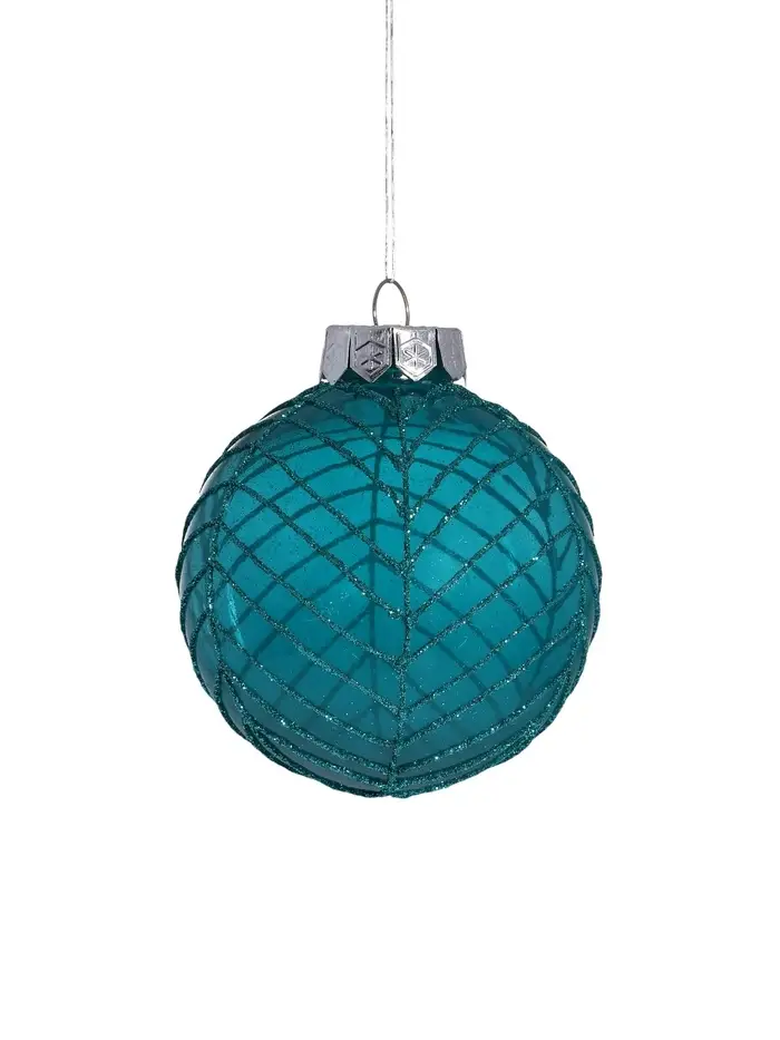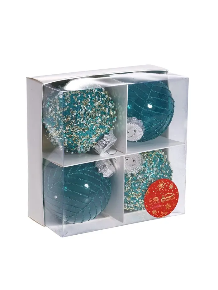 Ёлочные игрушки «Аустен», шары новогодние, d=8 см, 4 шт., паутинка, бирюзовый