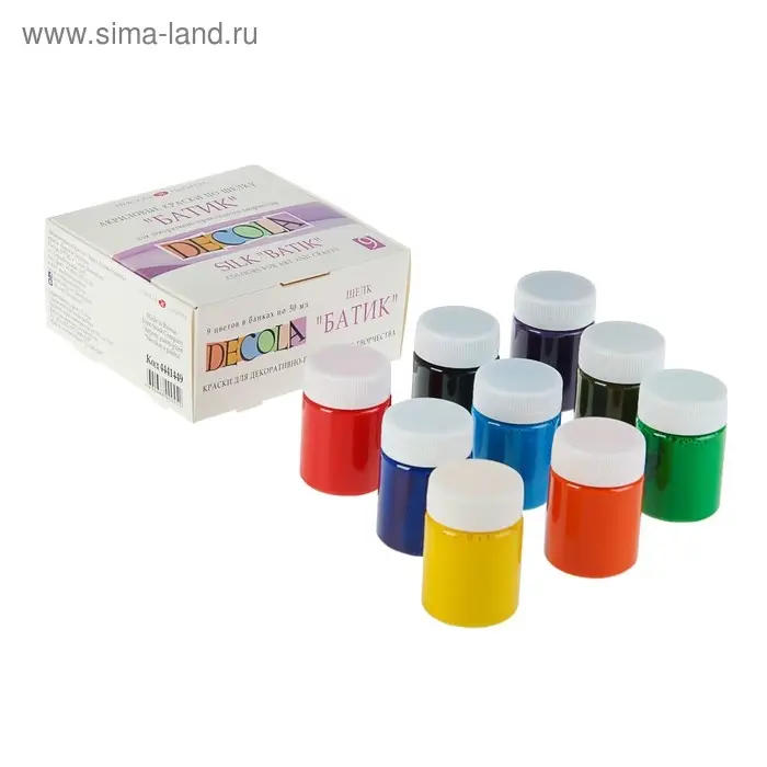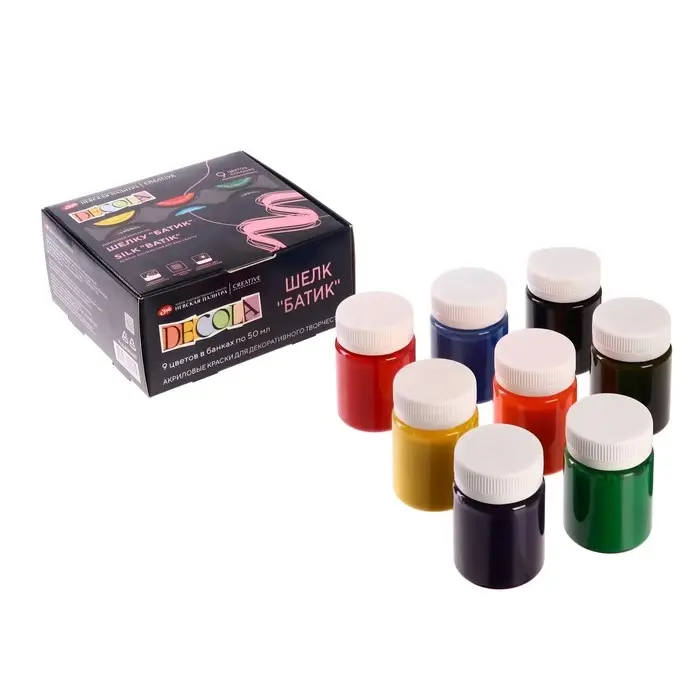 Краска по ткани (шелку), набор 9 цветов × 50 мл, ЗХК Decola «Батик» акриловая на водной основе, (4441449)