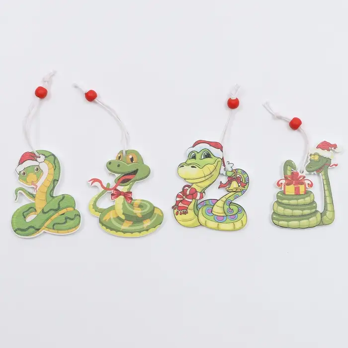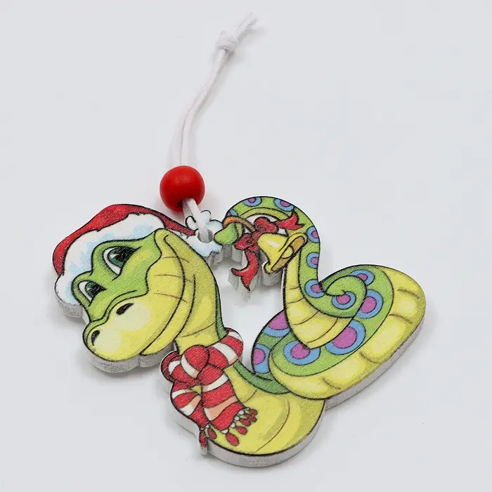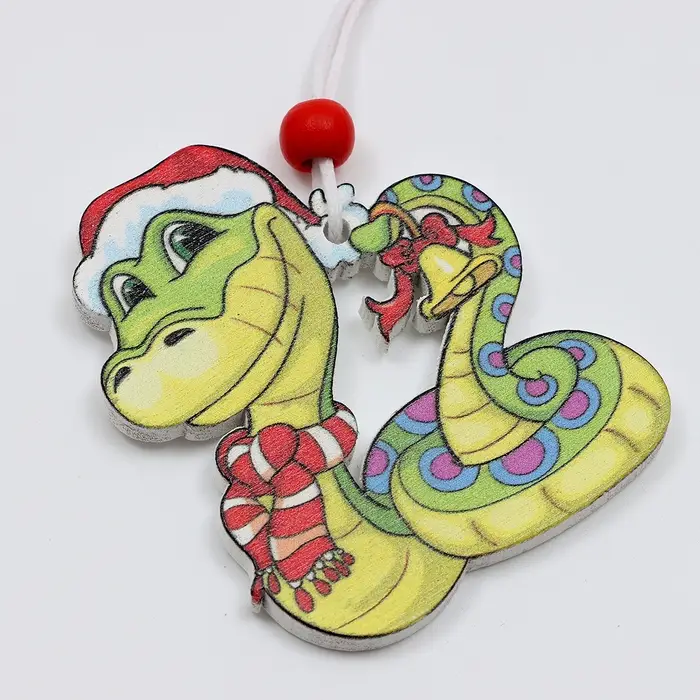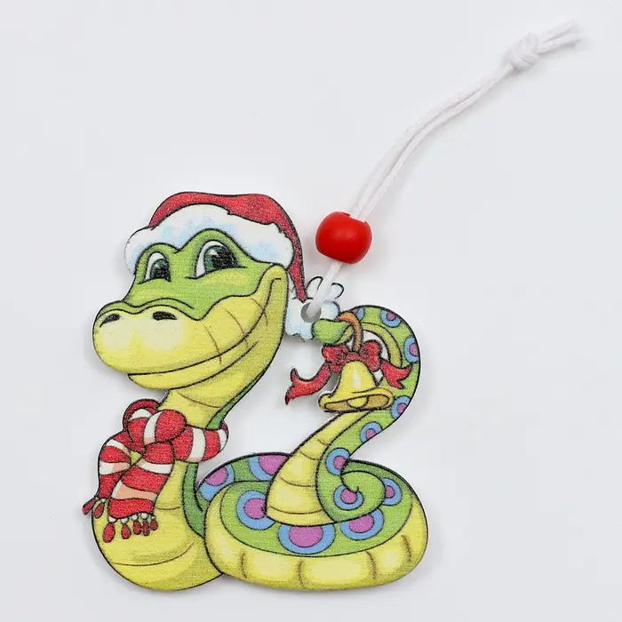 Набор из 12 деревянных подвесок — это идеальное решение для создания праздничной атмосферы. Фигурки в форме змей, символа 2025 года, станут ярким акцентом для украшения ёлки, сервировки стола или оформления интерьера. Каждый элемент набора выполнен из экологичных материалов — дерева и текстиля, что делает его долговечным и безопасным.