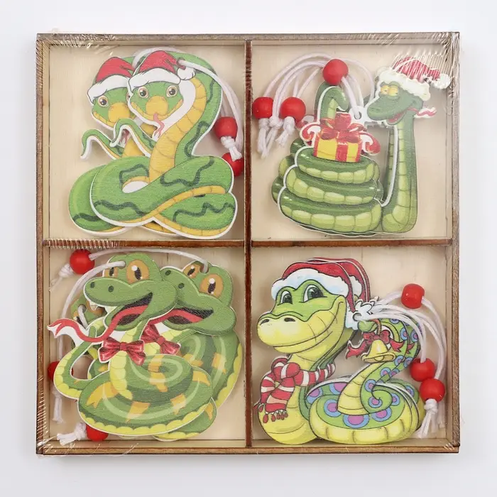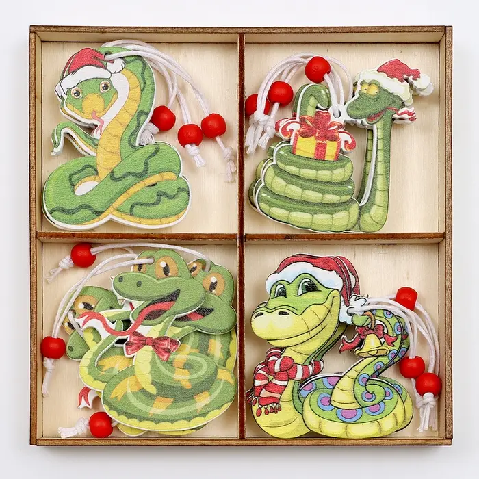 Елочные игрушки «Змея», в деревянной подарочной упаковке, 12 шт.