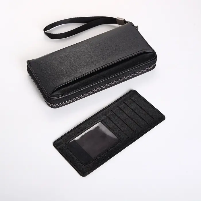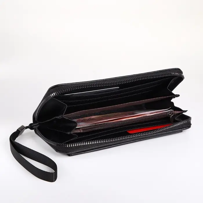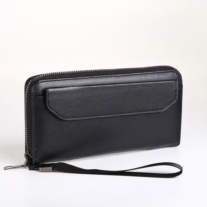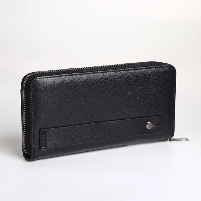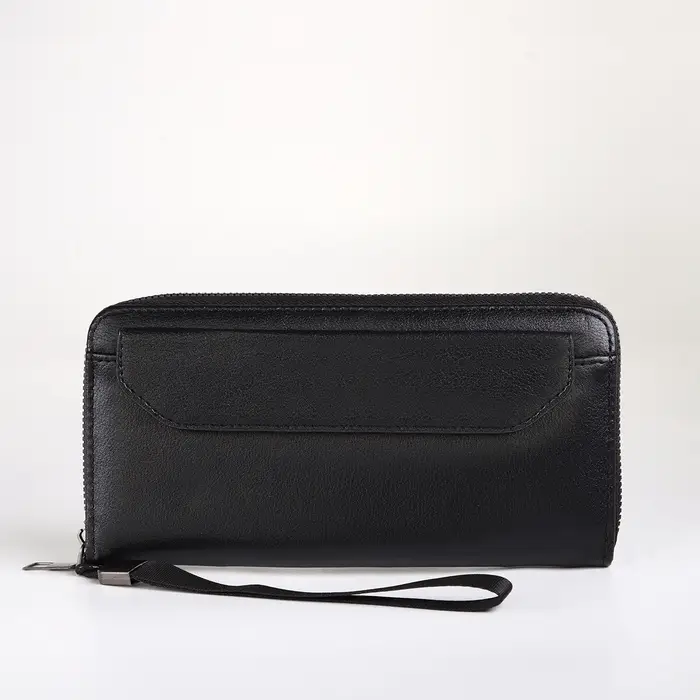 Портмоне-клатч мужской на молнии, с ручкой, чёрное