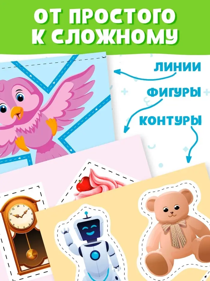 Этот набор помогает ребёнку освоить базовые навыки работы с ножницами, обучая аккуратности и внимательности. Каждое задание — это возможность создавать что-то своими руками, развивая координацию и пространственное мышление. Такие упражнения напоминают «школу мастерства», где каждая вырезанная картинка приближает к успеху. Родители могут присоединиться к процессу, помогая малышу выполнять задания и поддерживая его интерес к творчеству.