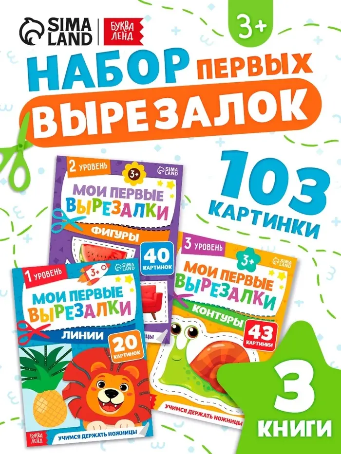 Книжки - вырезалки набор «Мои первые вырезалки», 3 шт., 103 картинки, 3+