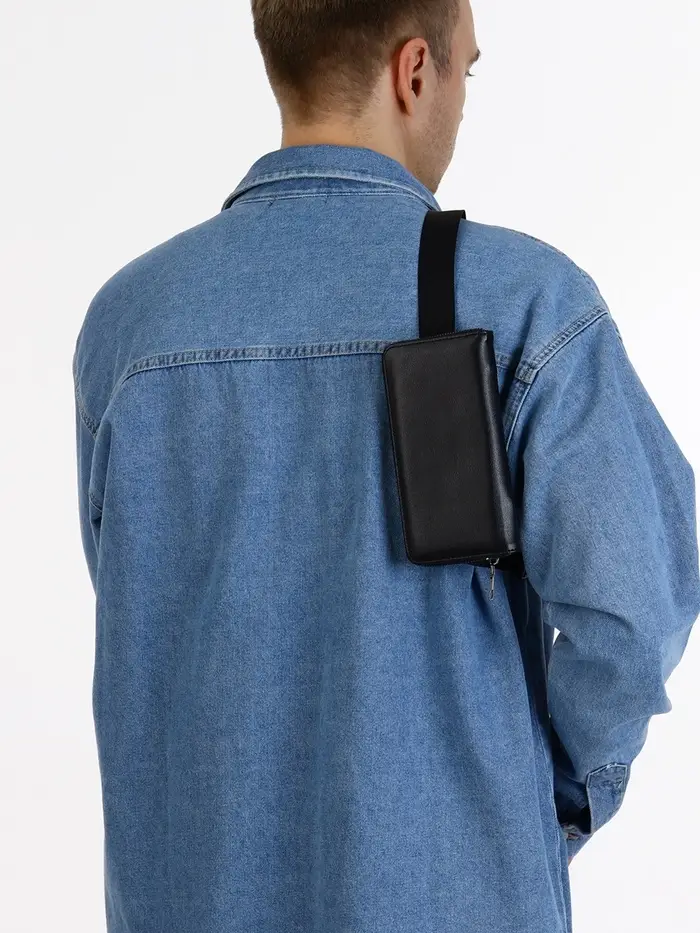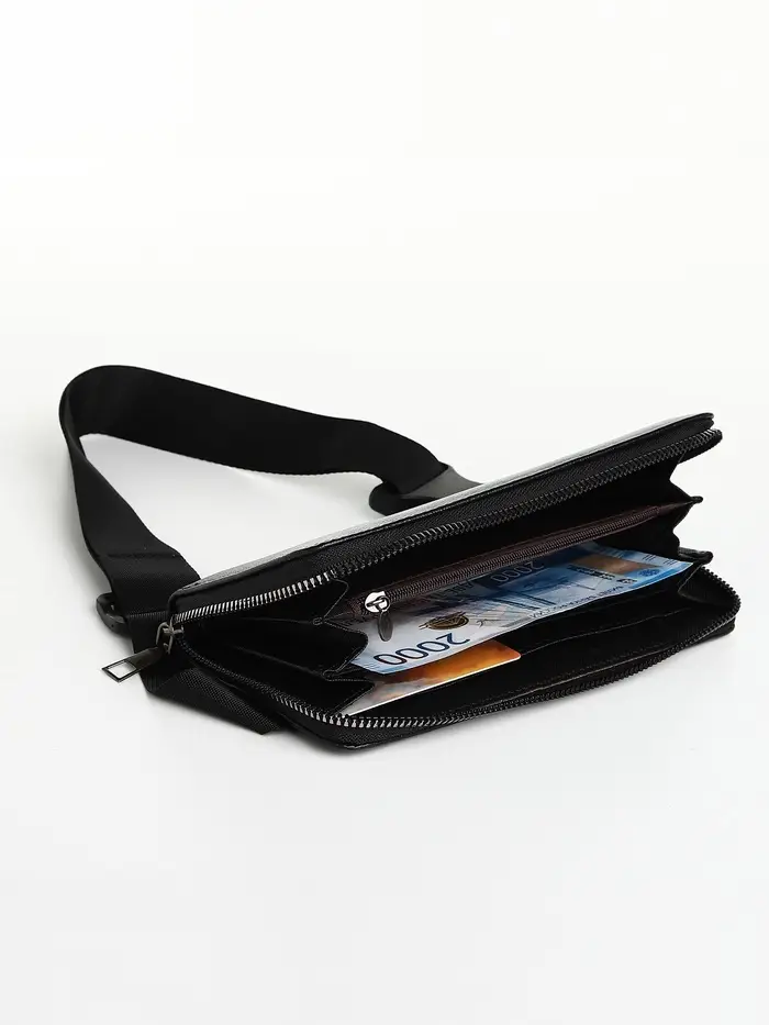 Сумка мужская через плечо TEXTURA, портмоне - клатч, на молнии, чёрная