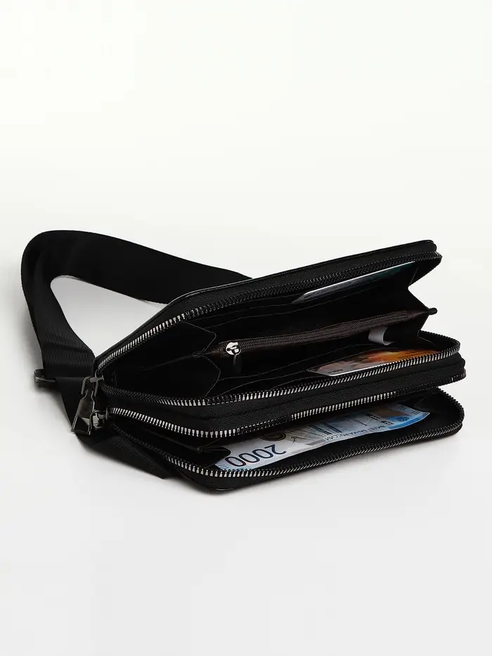 Сумка мужская на плечо TEXTURA, портмоне - клатч, чёрная