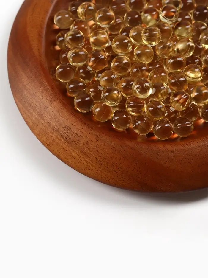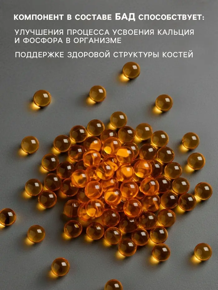 Состав: масло растительное (подсолнечное), оболочка (желатин, глицерин (загуститель), вода), витамин D3 (холекальциферол), смесь токоферолов (антиокислитель).