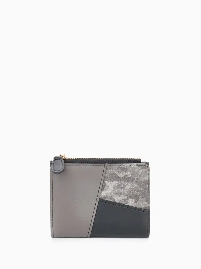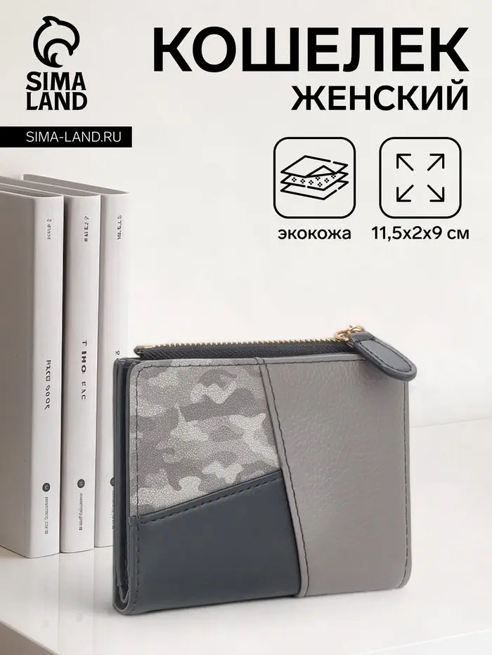 Кошелёк женский на кнопке, 11.5×2×9 см, комбинированный, серый