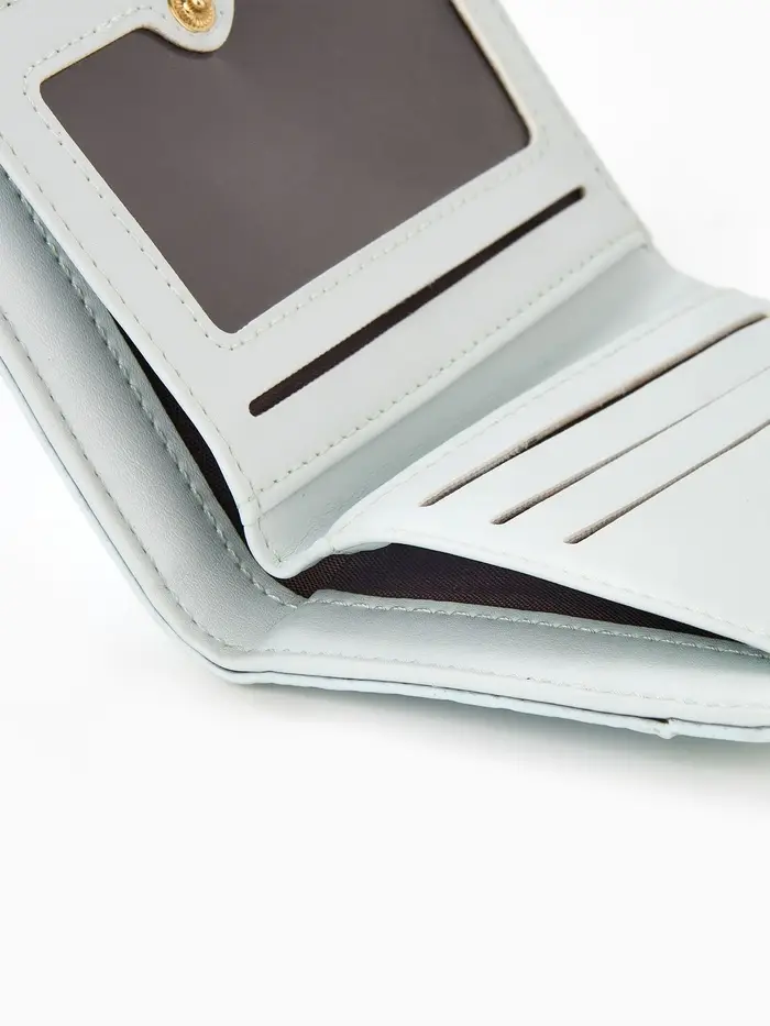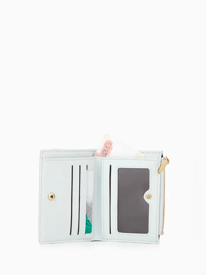 Кошелёк женский на кнопке, 12.5×2×9 см, однотонный, комбинированный, светло-голубой