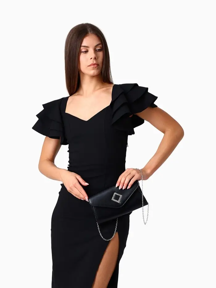 - Универсальный стиль: Черный цвет и серебряная фурнитура создают гармоничное сочетание, подходящее для любого наряда. Однотонная сумка станет идеальным выбором для вечеринок и деловых встреч.