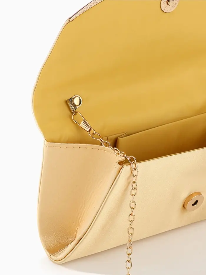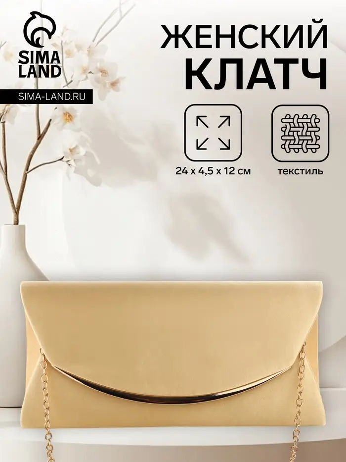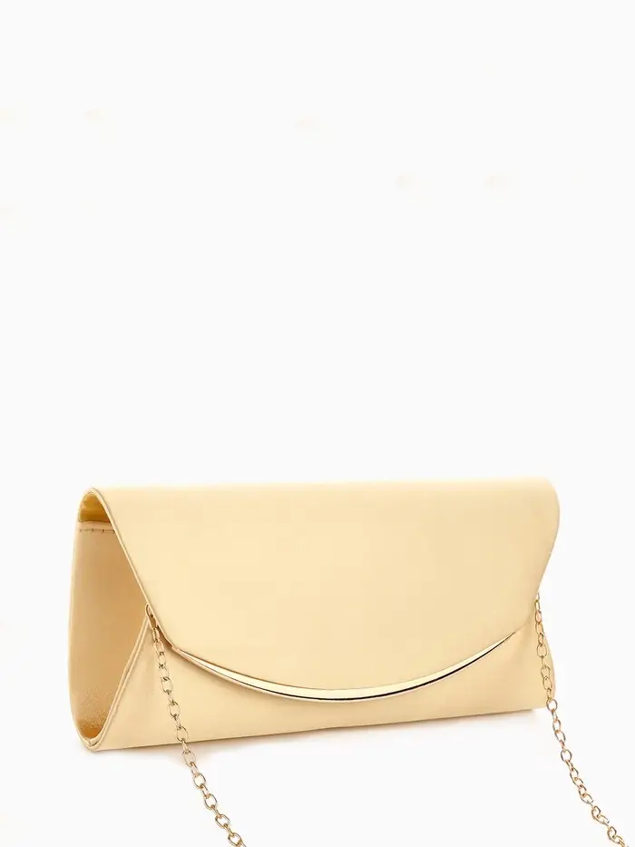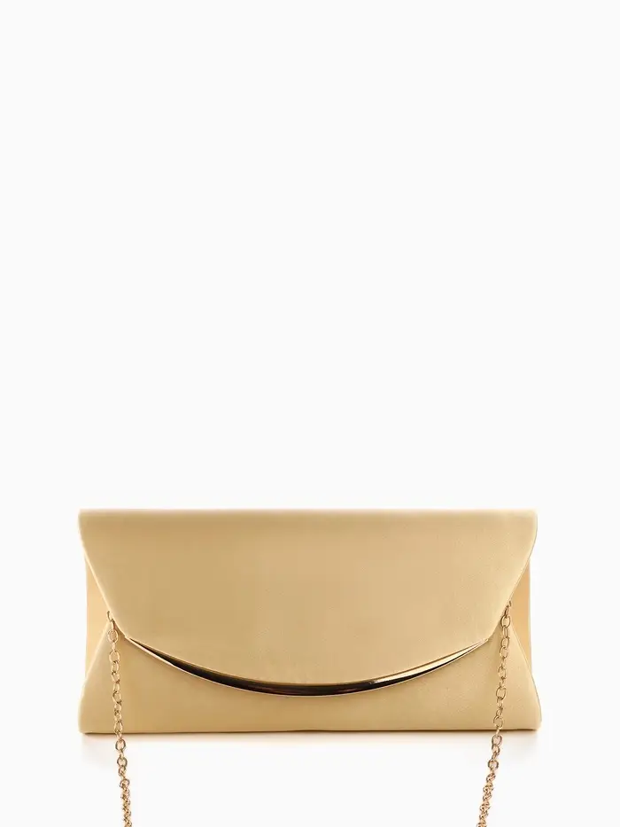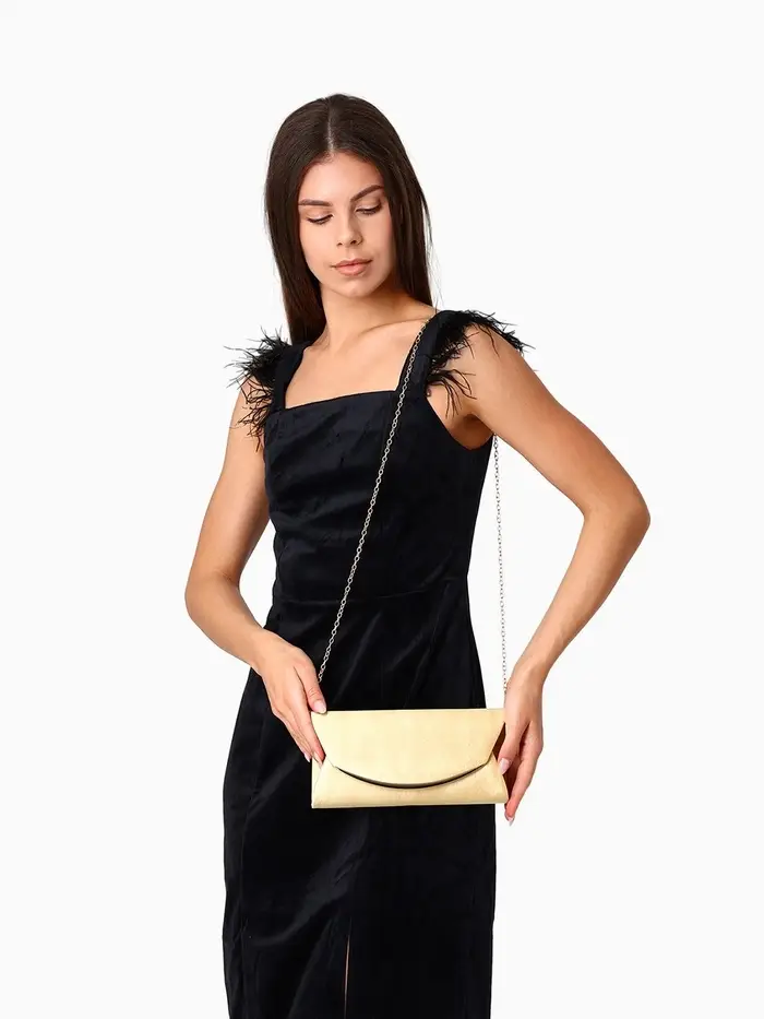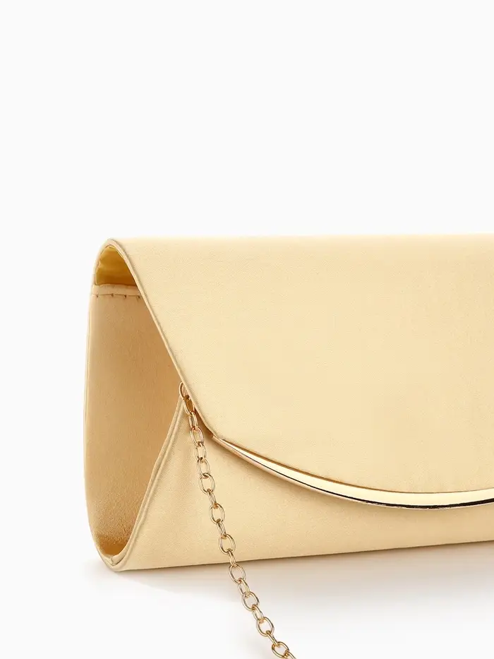 Сумка-клатч женская вечерняя на магните, на золотистой цепочке, однотонная, бежевая