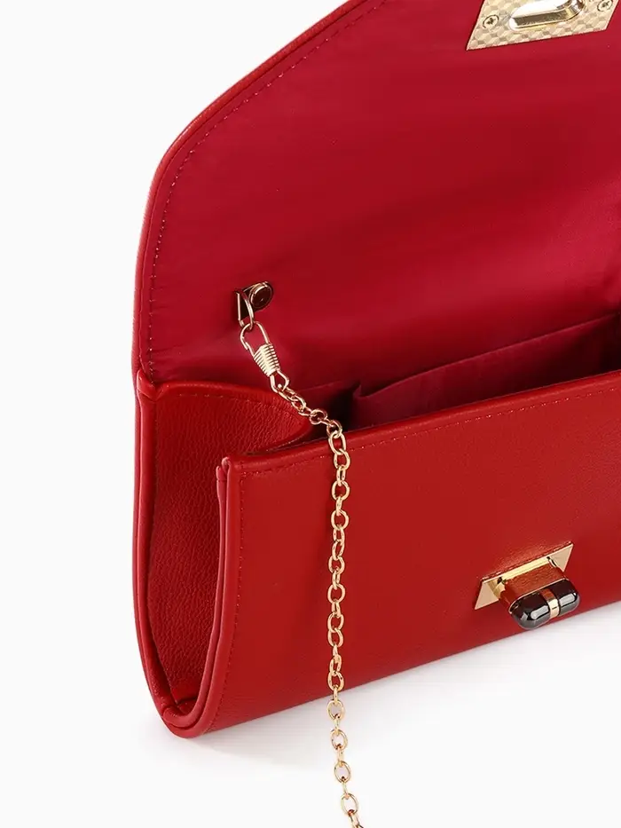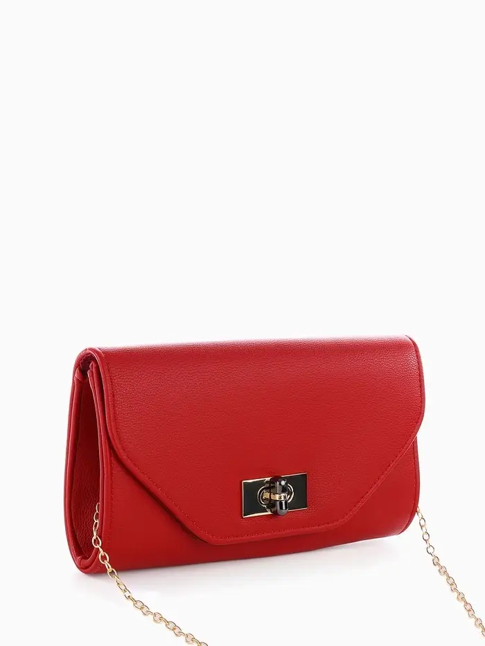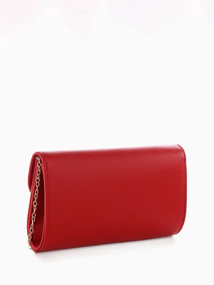 Сумка-клатч женская вечерняя на клапане, на золотистой цепочке, однотонная, бордовая