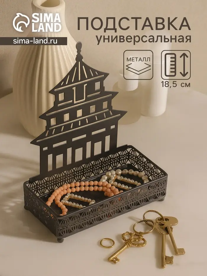 Подставка для мелочей металл «Дворец», чёрный, 6.3×14.5×18.5 см