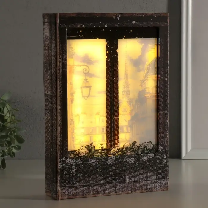 Эта световая шкатулка-книга — стильный и функциональный аксессуар для хранения ценных мелочей. Она станет изысканным подарком, который несёт в себе атмосферу путешествий и романтики больших городов.