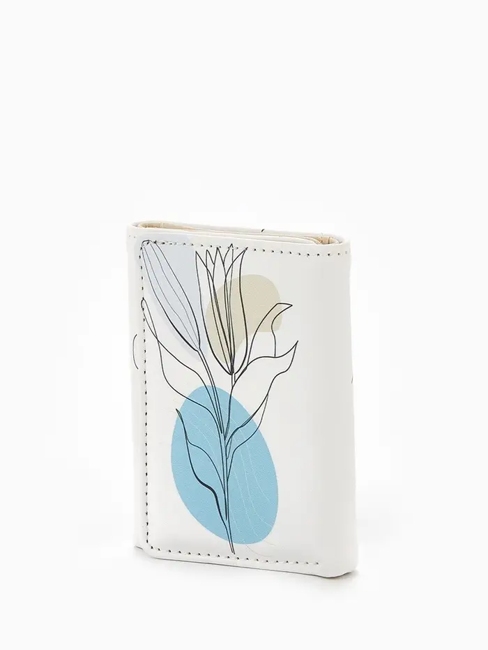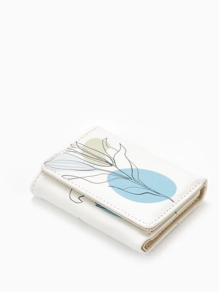 Этот белый кошелёк с цветами — элегантный и практичный спутник для повседневных дел. Его компактный тройной формат легко помещается в ладони, но при раскрытии становится просторным. Кнопка надёжно фиксирует содержимое, а одно отделение помогает быстро найти нужную карту или купюру. Изысканный цветочный принт на искусственной коже делает аксессуар лёгким и женственным, идеальным для весны.