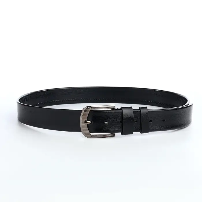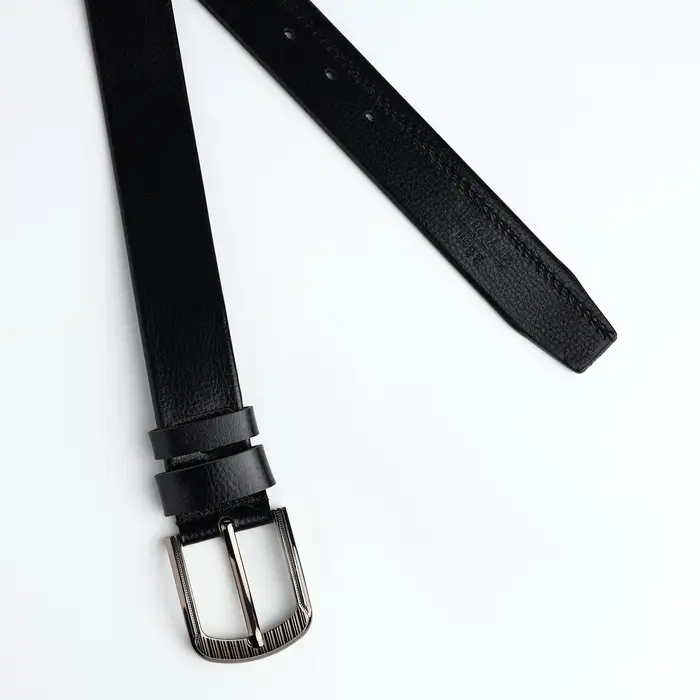 Мужской чёрный ремень из прессованной кожи — базовый аксессуар для тех, кто ценит аккуратный внешний вид и понятные, практичные детали в гардеробе. Он хорошо сочетается с классическими брюками, джинсами и повседневной одеждой, помогает собрать образ и делает его более завершённым. Тёмная металлическая пряжка подчёркивает сдержанный характер модели и поддерживает универсальный стиль.