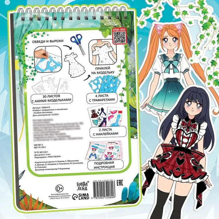 Альбом косплеера позволит вам самостоятельно разработать собственные эскизы образов. Вы сможете создать 30 оригинальных аутфитов на заготовках с моделями, экспериментировать с цветами, текстурами и фасонами.