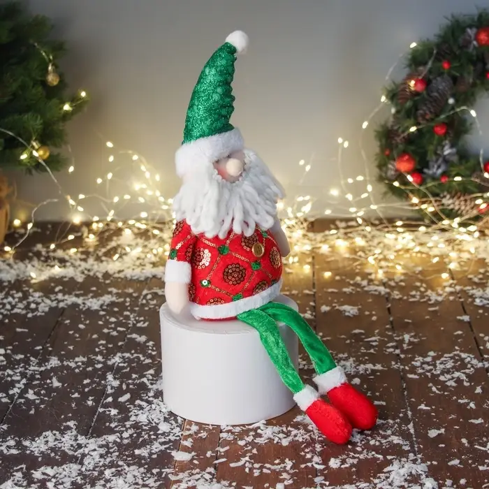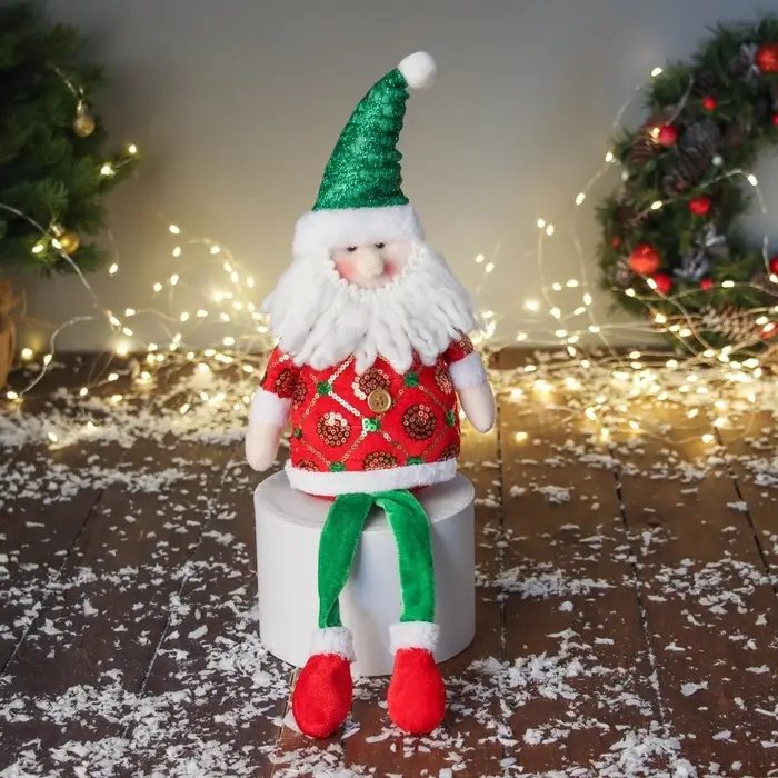 Игрушка мягкая «Дед Мороз в сияющем костюме с длинными ножками» 42×19 см, красно-зелёный
