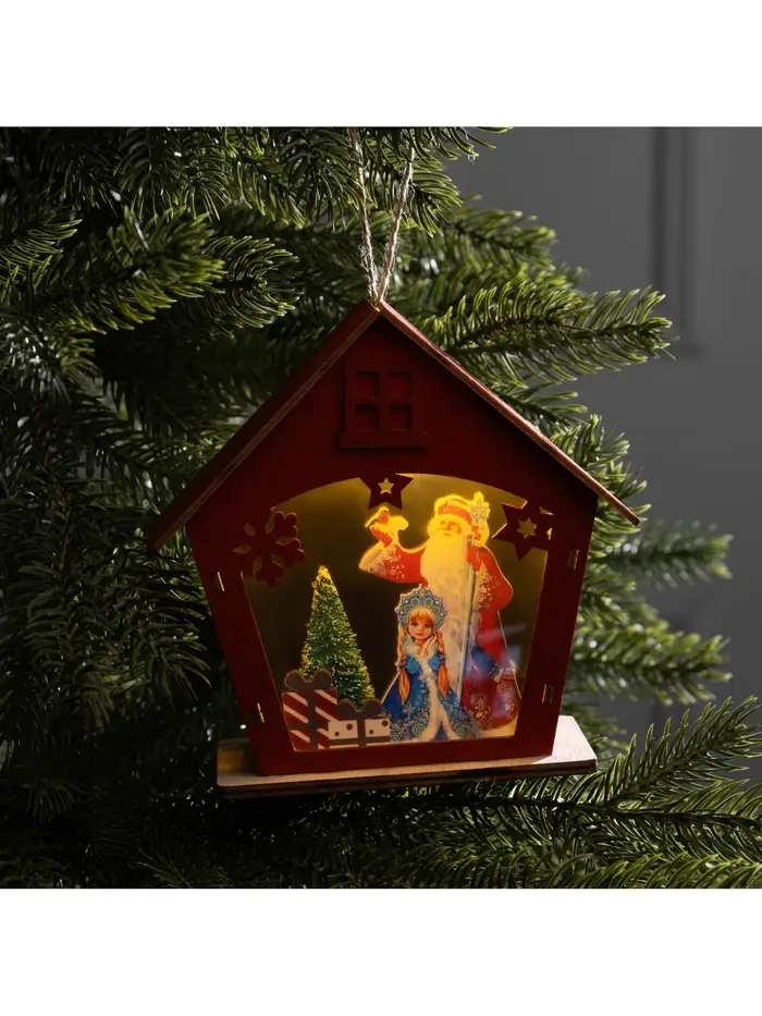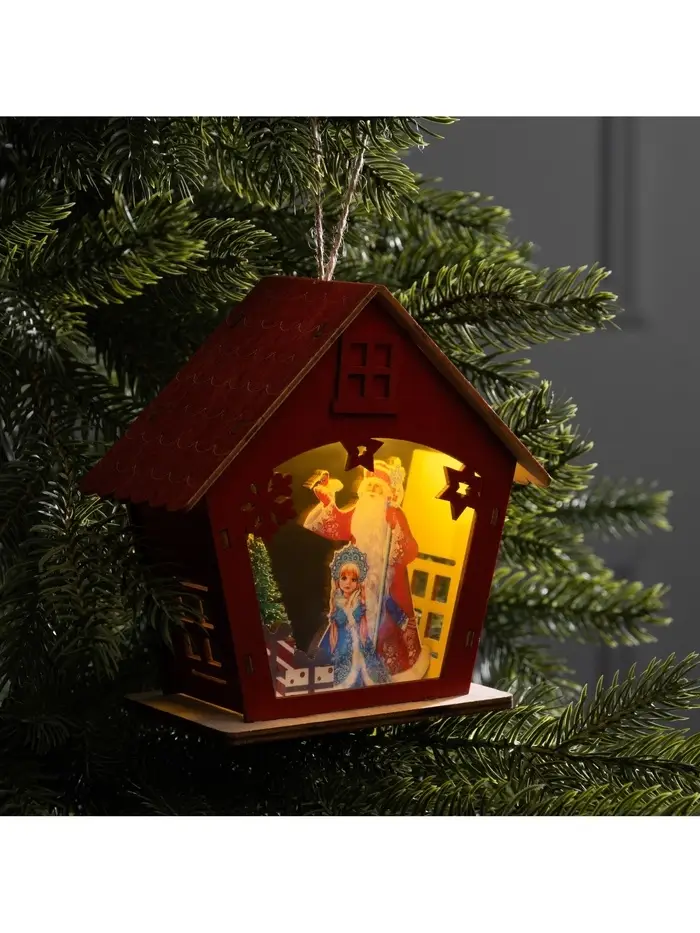 Подвеска световая «Дом Снегурочки», 8×4×8.5 см, 1 LED, от батареек AG10×3, свечение тёплое белое