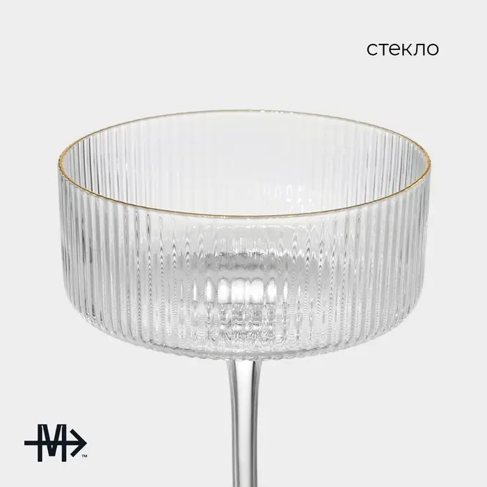 Бокал для шампанского Magistro «Орион», 300 мл, 10.5×14 см, стекло, с золотой отводкой, прозрачный