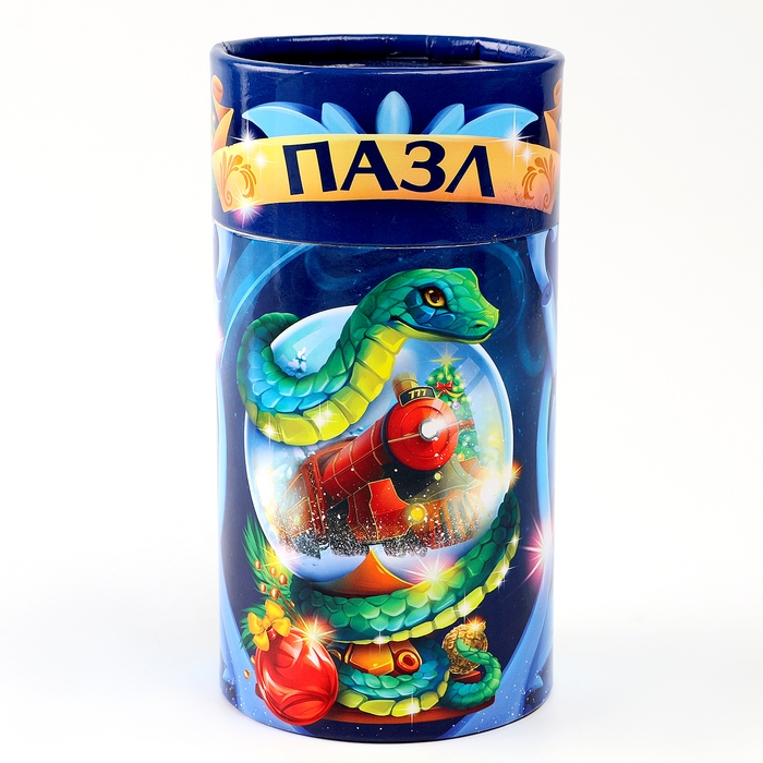 Пазлы фигурные деревянные на новый год «Змея на шаре. Новогодний экспресс», 128 элементов, символ года 2025