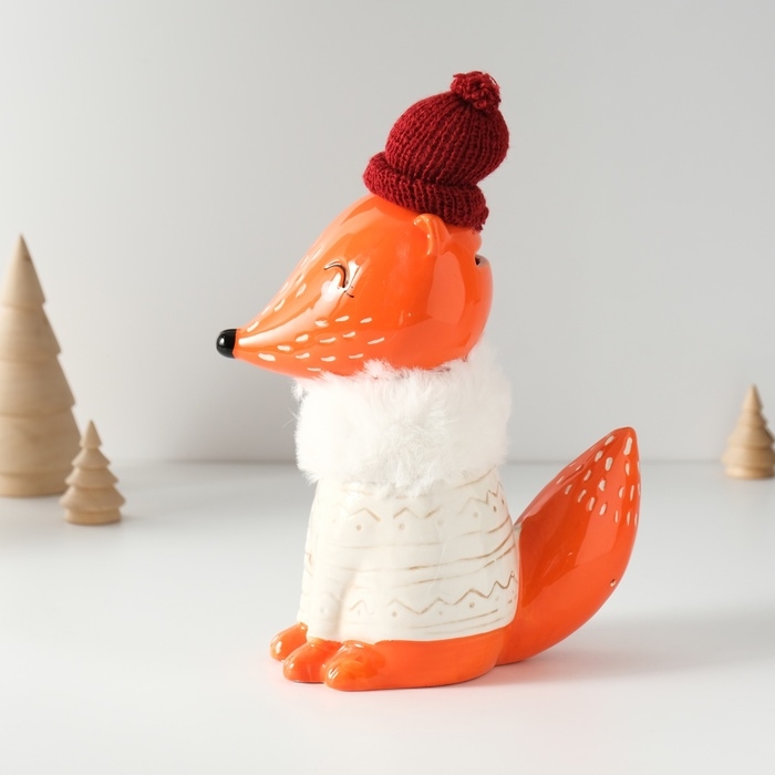 Копилка керамика "Лисёнок в сером свитере и шапке" 7,8х15,7х25 см