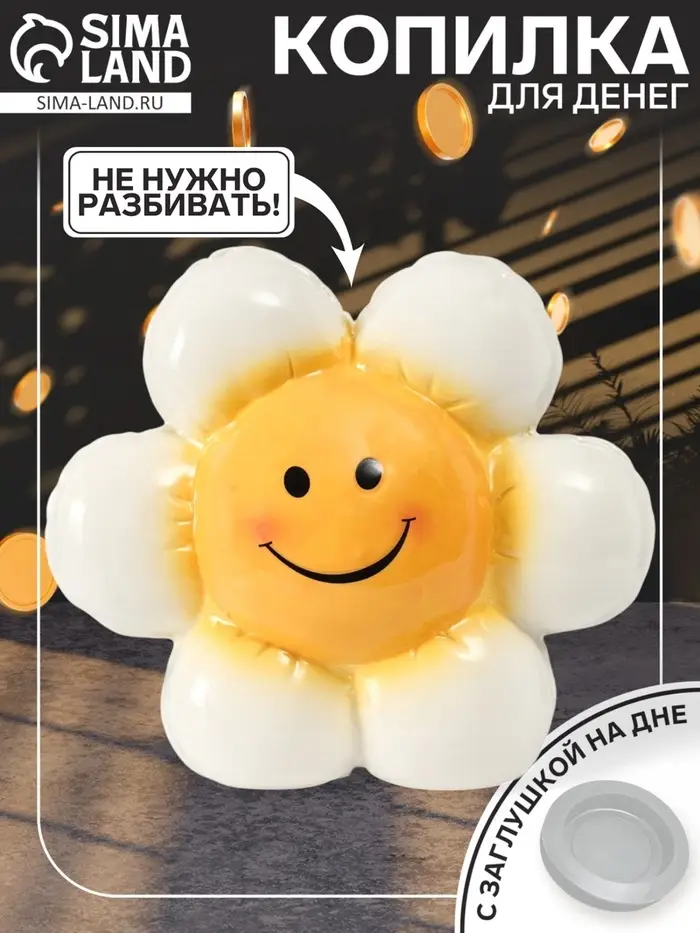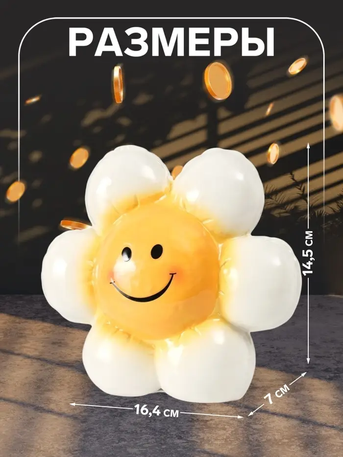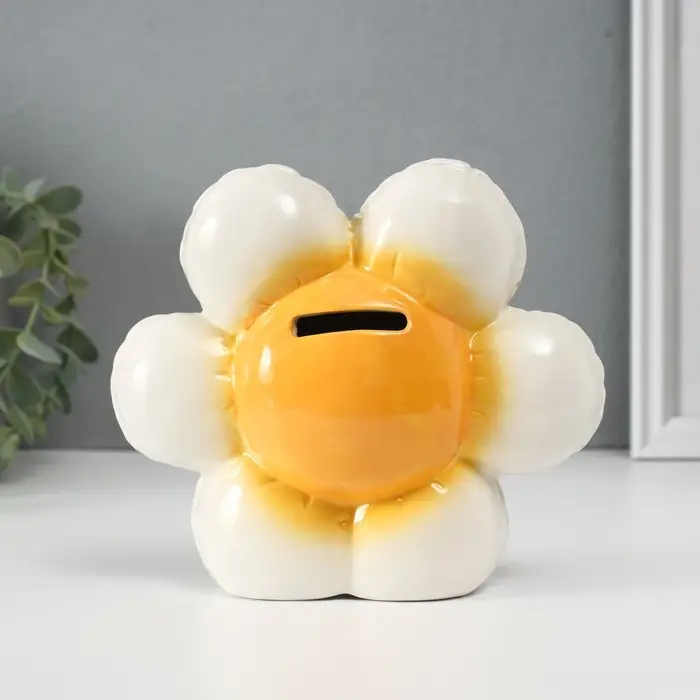 Копилка для денег «Ромашка-шарик», керамика, 7×16.4×14.5 см