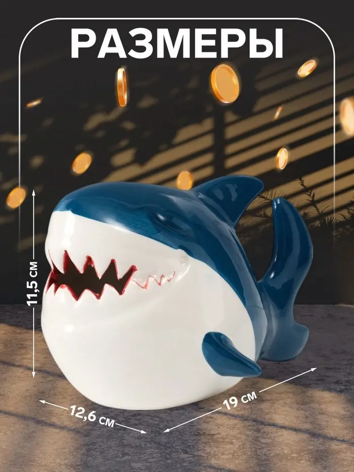 Копилка для денег «Акулёнок», керамика, 12.6×19×11.5 см