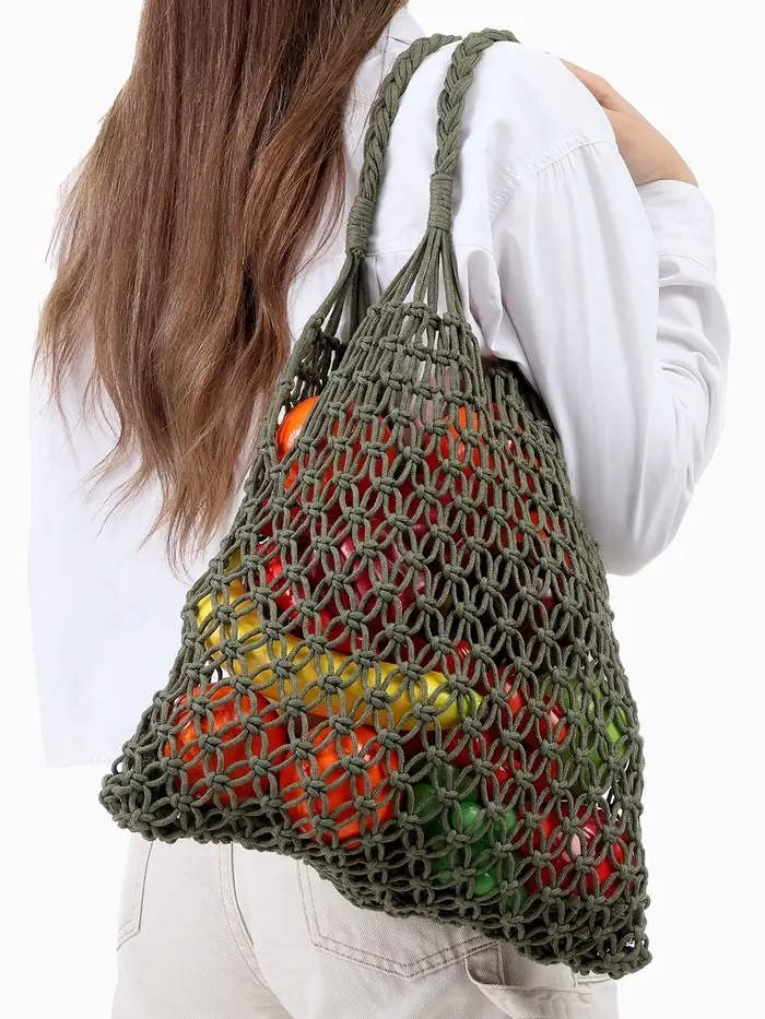 Сетчатые сумки из хлопка, произведенного с заботой о людях и природе, позволят вам обходиться без одноразовых пластиковых пакетов, а значит, уменьшить воздействие на климат. Кроме того, в таких сумках можно хранить фрукты и овощи.