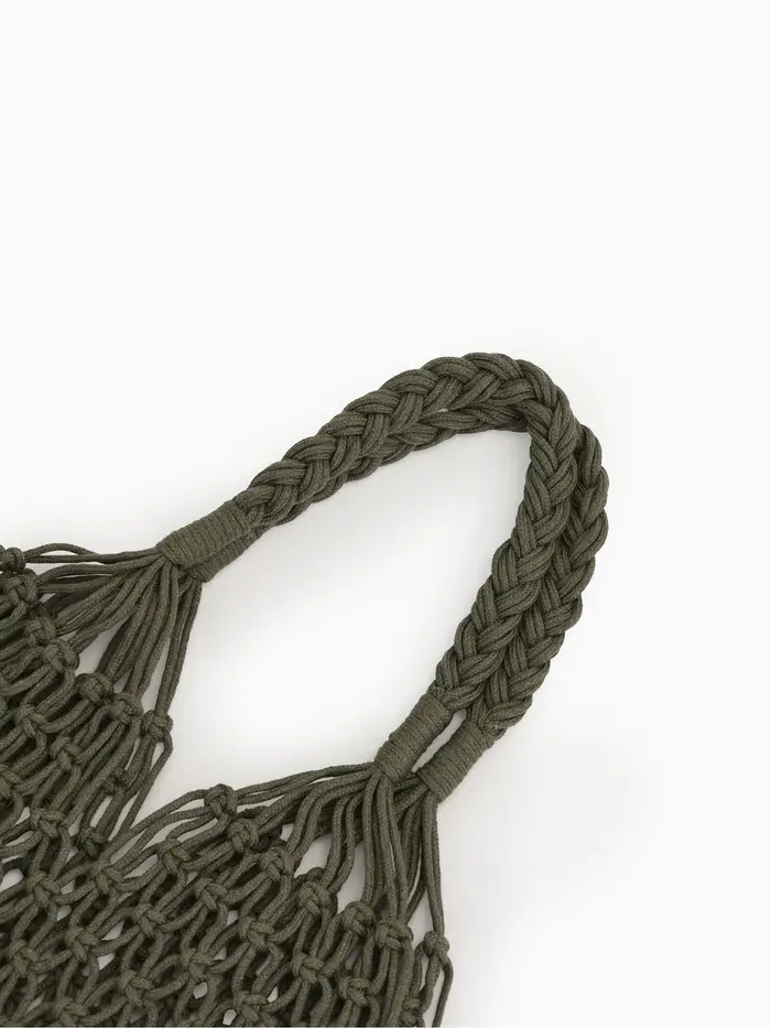 Сумка - авоська плетёная, клетка 1.5 см, зелёная