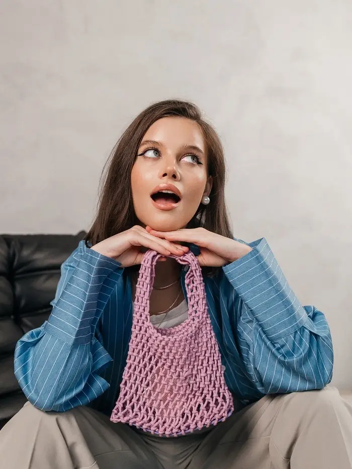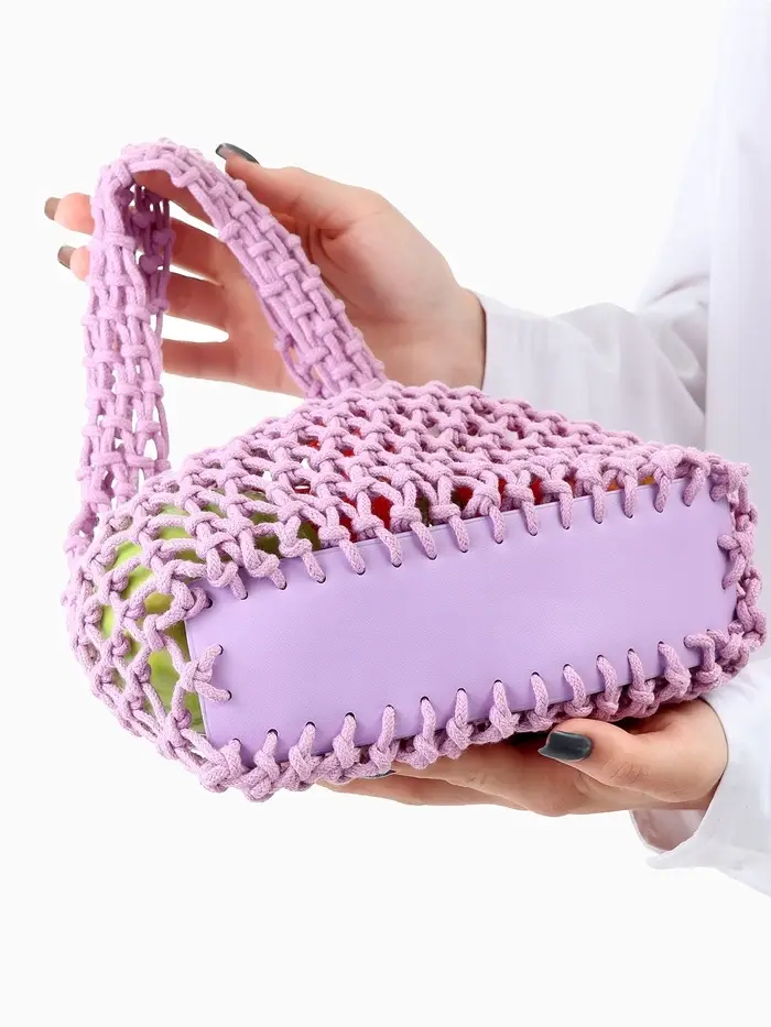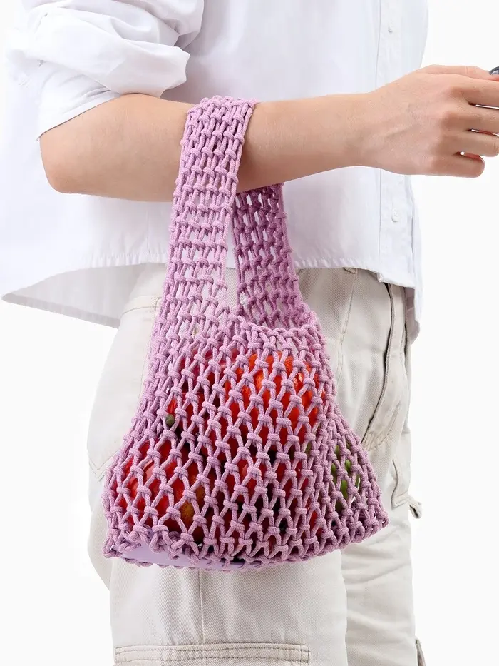 Сумка - авоська плетёная, клетка 1.5 см, лиловая