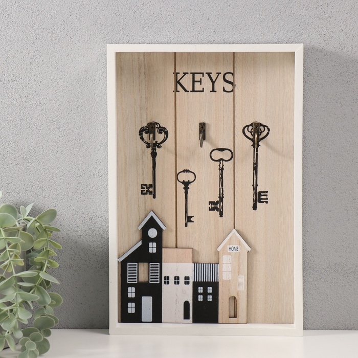 Крючки декоративные дерево "Ключи и домики" 20х30 см