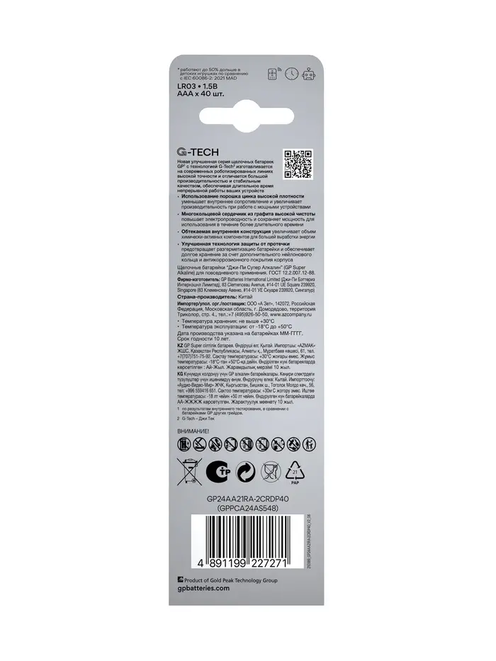 Батарейка алкалиновая GP Super, AAA, LR03-40BOX, 1.5 В, набор 40 шт.