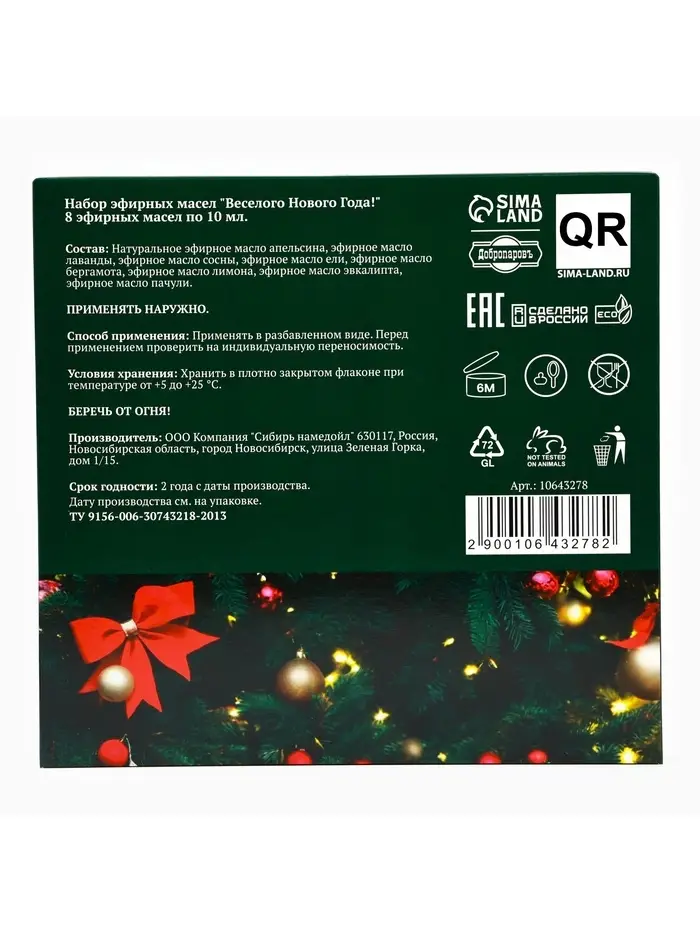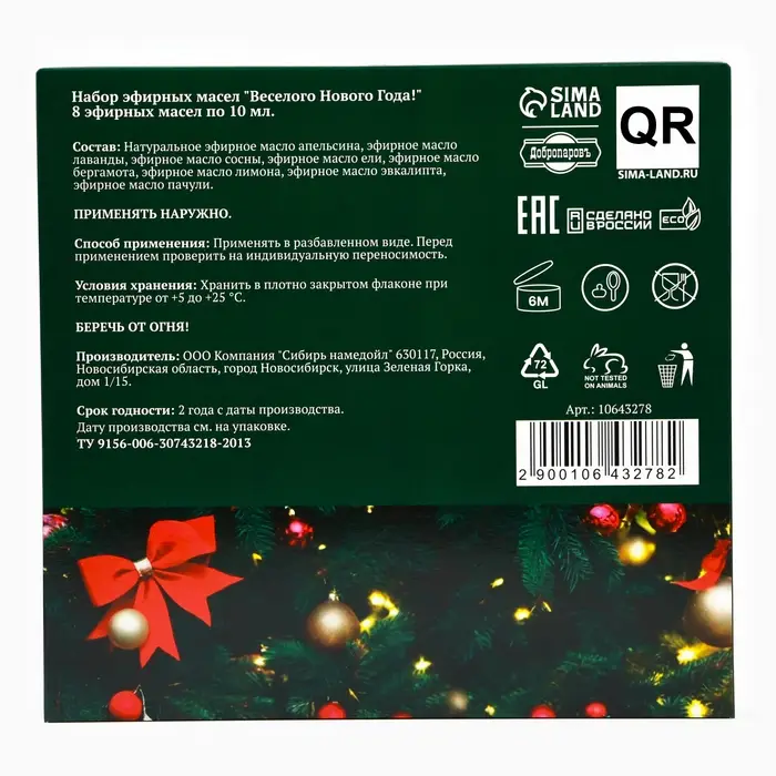 Набор эфирных масел «Веселого Нового Года!» — это праздничная коллекция натуральных ароматов, которая создаёт уютную атмосферу и наполняет дом гармонией. В набор входит 8 эфирных масел по 10 мл, каждое из которых обладает своими уникальными свойствами и может использоваться как по отдельности, так и в сочетаниях.