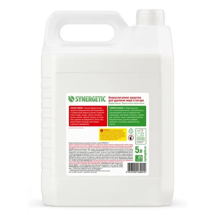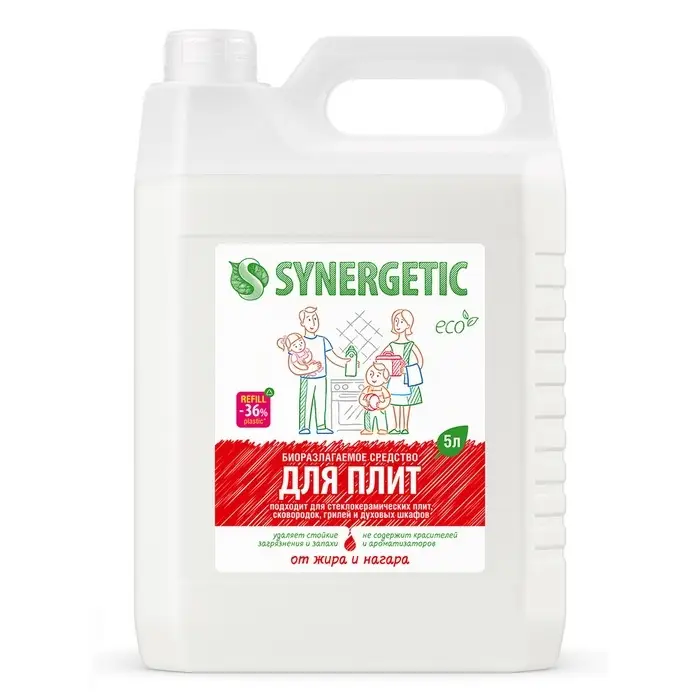 Биоразлагаемое средство для плит от жира и нагара SYNERGETIC - высокоэффективное щелочное средство для удаления жира, нагара, копоти, масляных пятен и накипи с плит и других кухонных поверхностей.