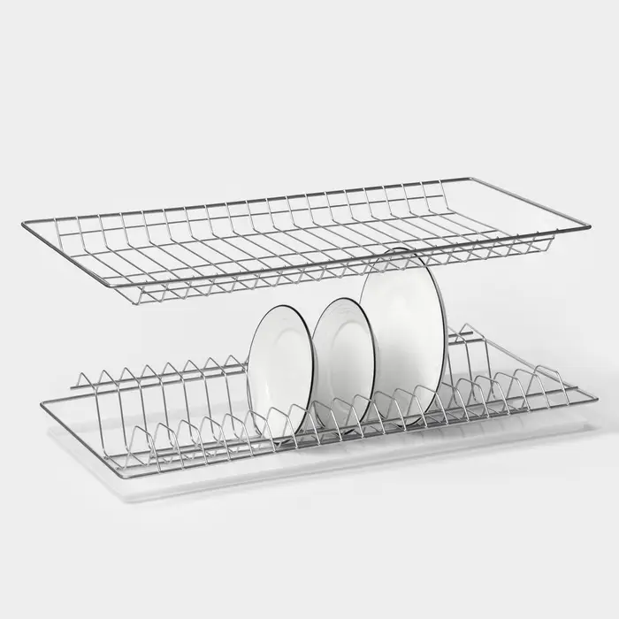 Комплект выполнен из надёжного металла, прослужит вам долгие годы. Рационально использовать пространство на кухне поможет сушилка, а мы порадуем низкой ценой.