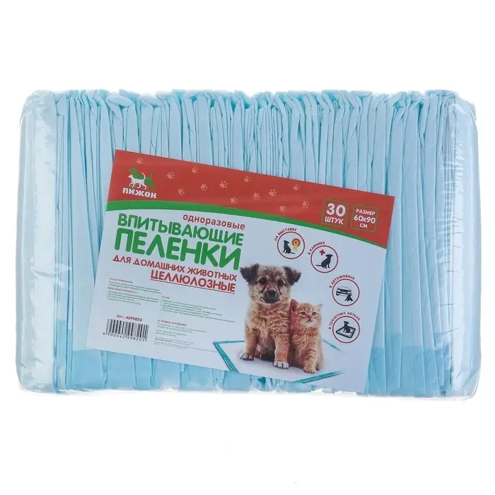 Впитывающие пелёнки для животных «ПИЖОН», 60×90 см, набор 30 шт., целлюлоза