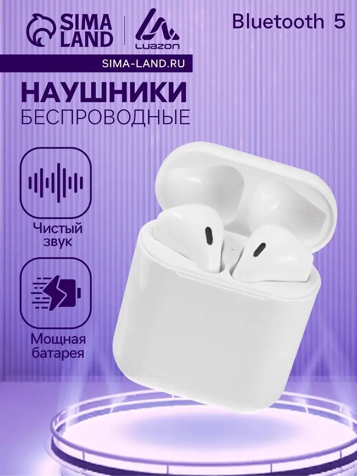 Наушники беспроводные Luazon i12, TWS, вкладыши, Bluetooth 5.0, 35/300 мАч, белые глянцевые
