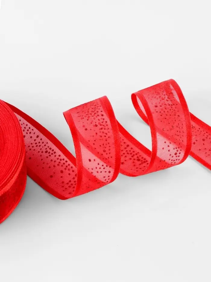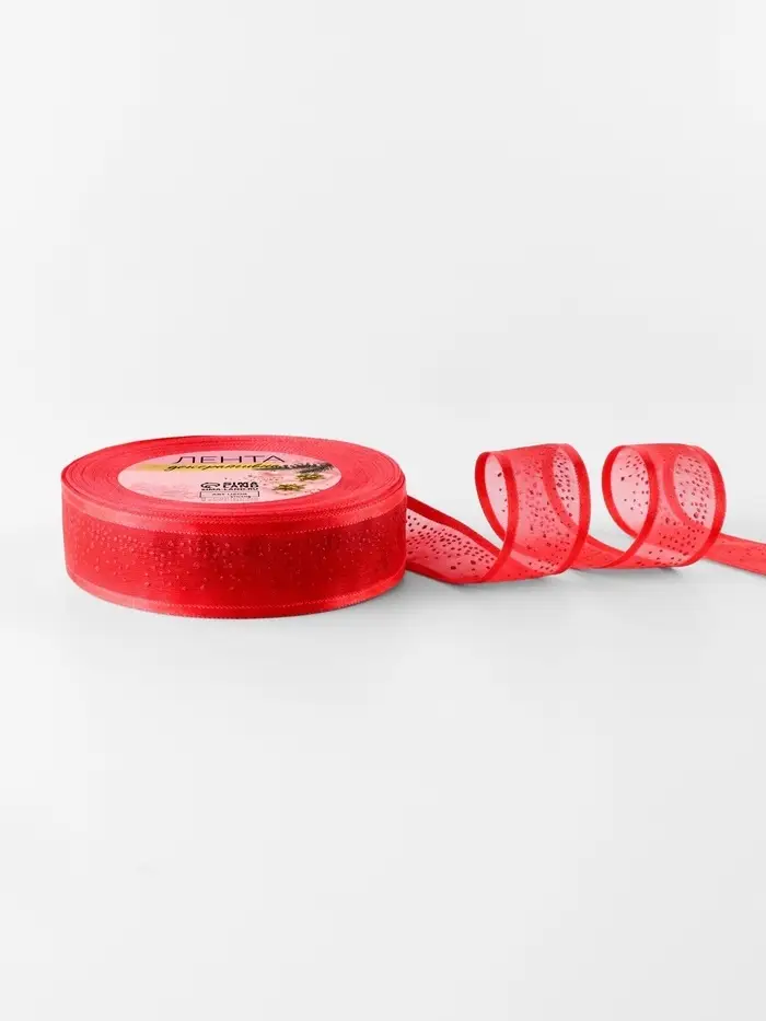 Красная капроновая лента с блёстками добавит праздничного сияния в любое оформление. Её полупрозрачная текстура подчёркивает лёгкость материала, а мерцающий декор создаёт эффект искрящихся огоньков. Такой аксессуар подходит для упаковки подарков, создания декоративных бантов, оформления композиций и украшения интерьера к Новому году. Яркий цвет и блеск ленты напоминают о праздничных гирляндах и усиливают атмосферу зимнего торжества.