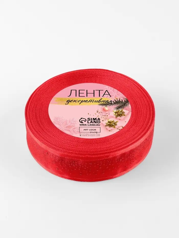 Лента капроновая «Блёстки», 25 мм, 18±1 м, красная