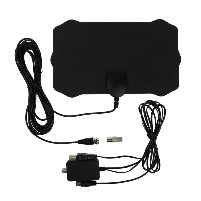 Антенна, комнатная, активная, с усилителем, 5 В, 25 дБи, DVB-T2, цифровая, клеящаяся, черная