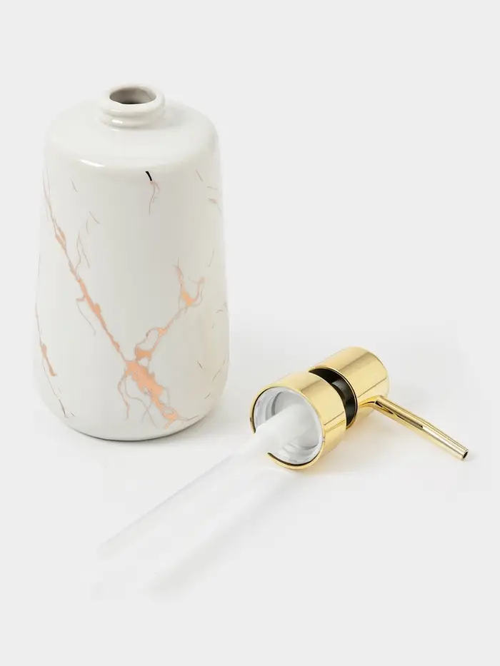 Керамический дозатор для жидкого мыла станет стильным дополнением вашей ванной комнаты или кухни. Такой аксессуар очень удобен в использовании. Просто перелейте жидкое мыло или моющее средство в диспенсер, а когда понадобиться, выдавите необходимое количество лёгким нажатием на помпу дозатора.