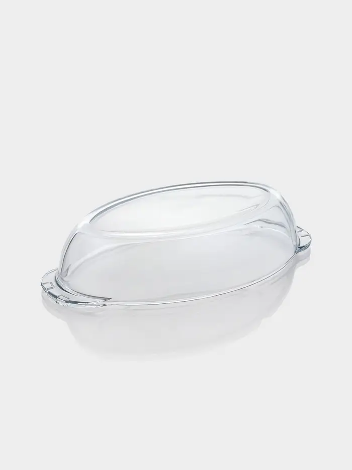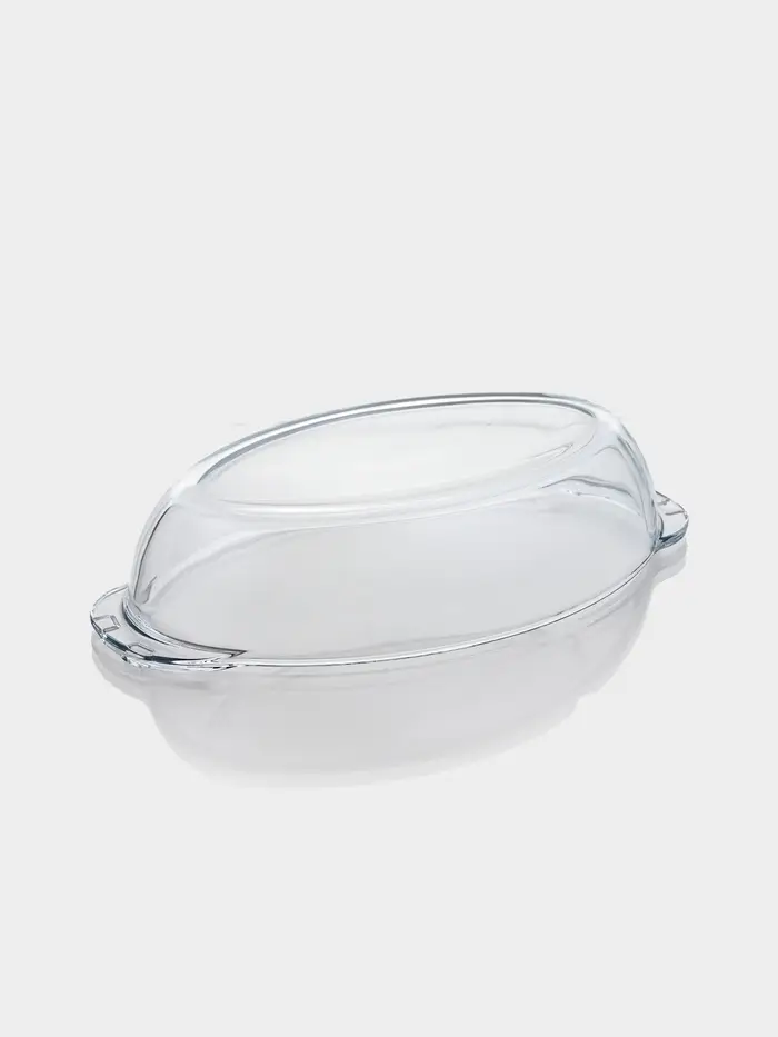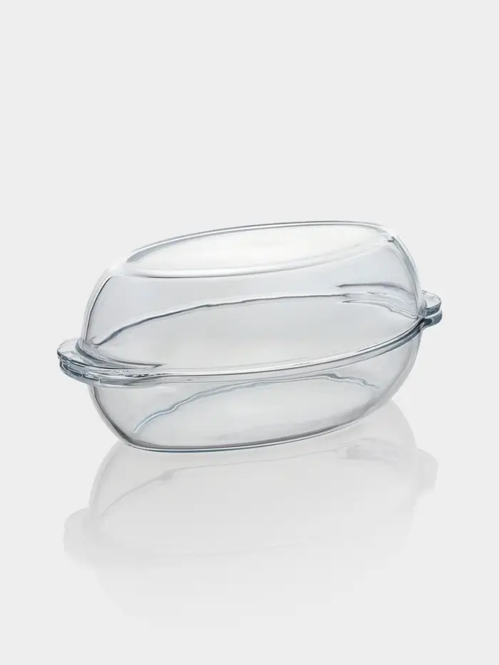 Утятница Paşabahçe Borcam, 2 л, с крышкой-формой, жаропрочное стекло, прозрачная