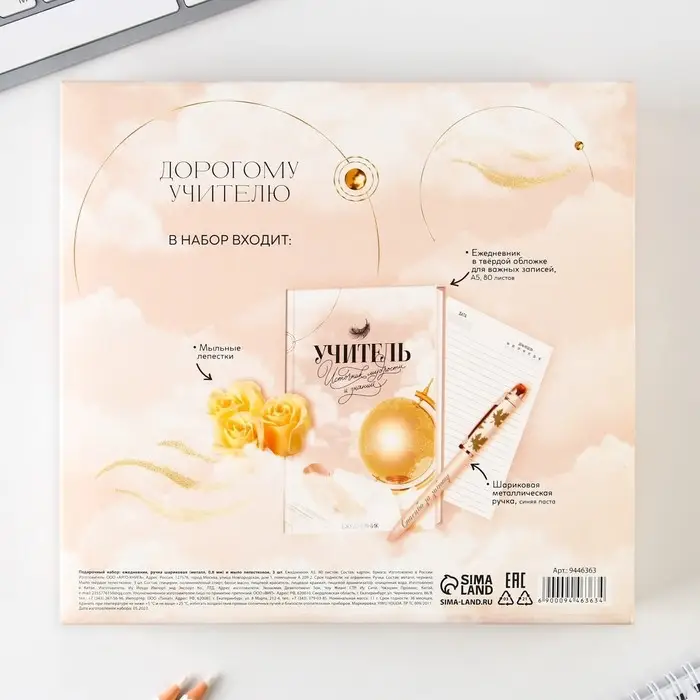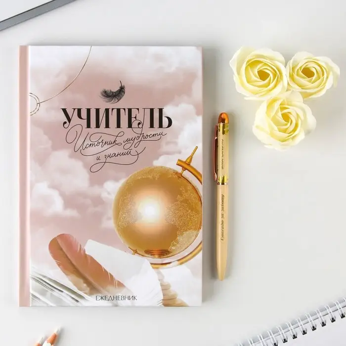 Подарочный набор «Учителю: Учитель - источник мудрости»:ежедневник А5, 80 листов, ручка шариковая металл 0,8 мм, мыльные лепестки