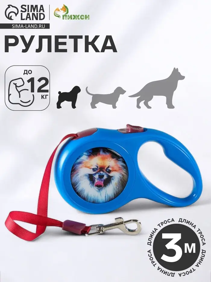 Лента имеет длину 3 метров, обеспечивая достаточно пространства для передвижения питомца на прогулке.