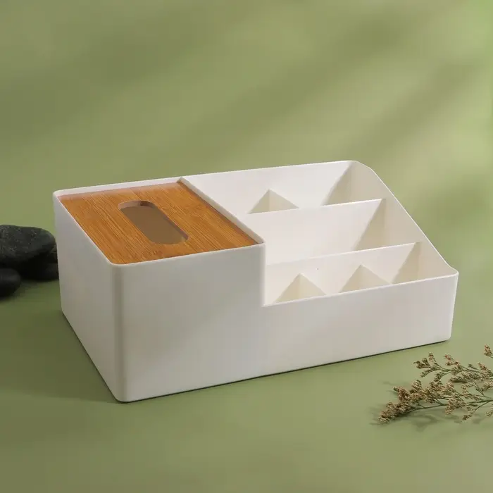 Благодаря современному минималистичному дизайну, органайзер станет гармоничным дополнением любого пространства. У органайзера 7 секций для хранения, что значительно увеличивает место для хранения.