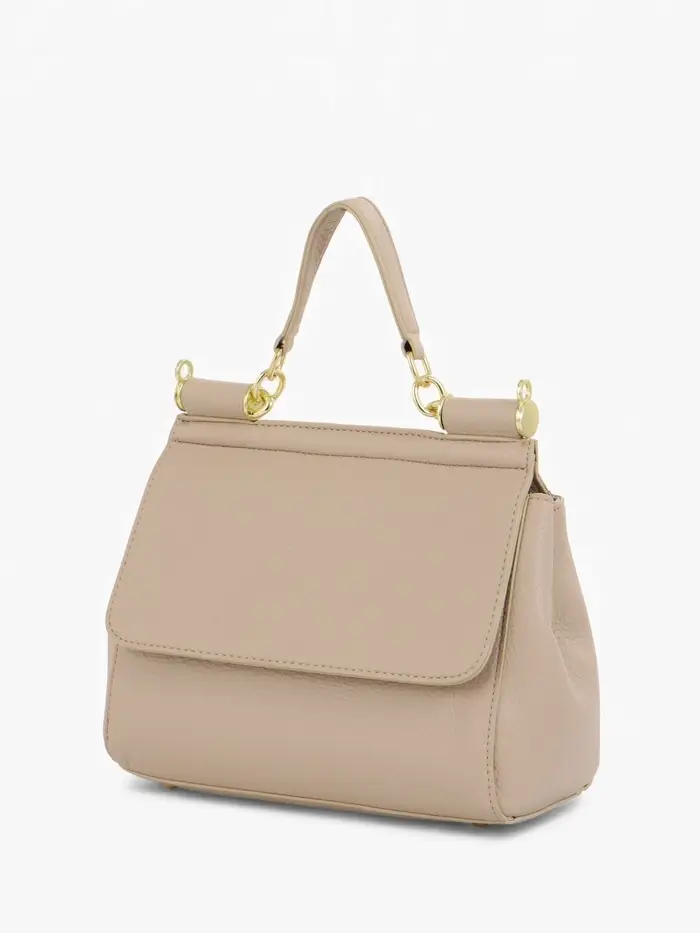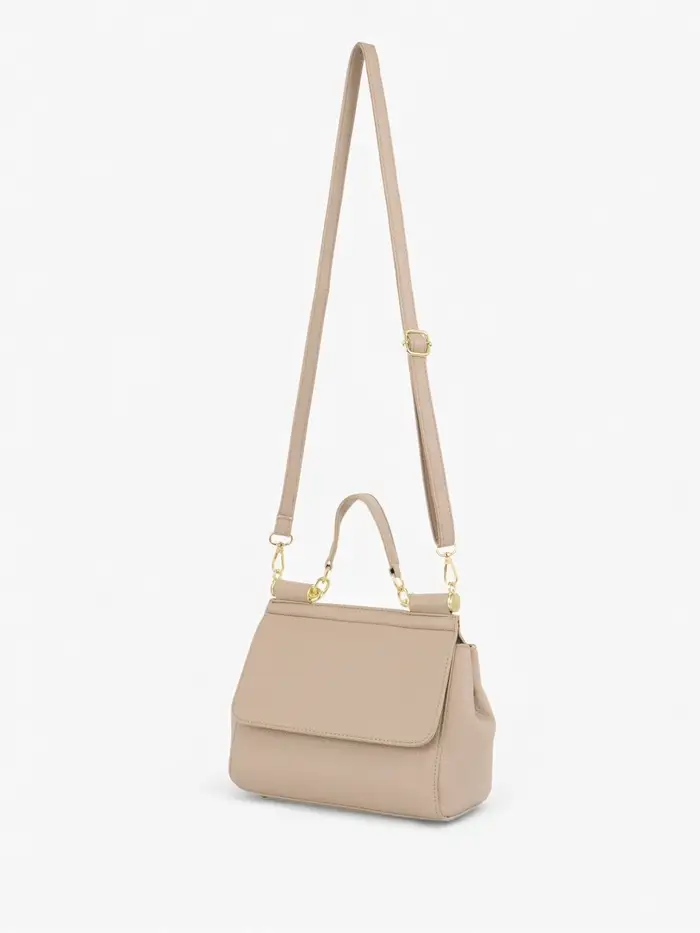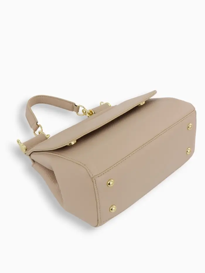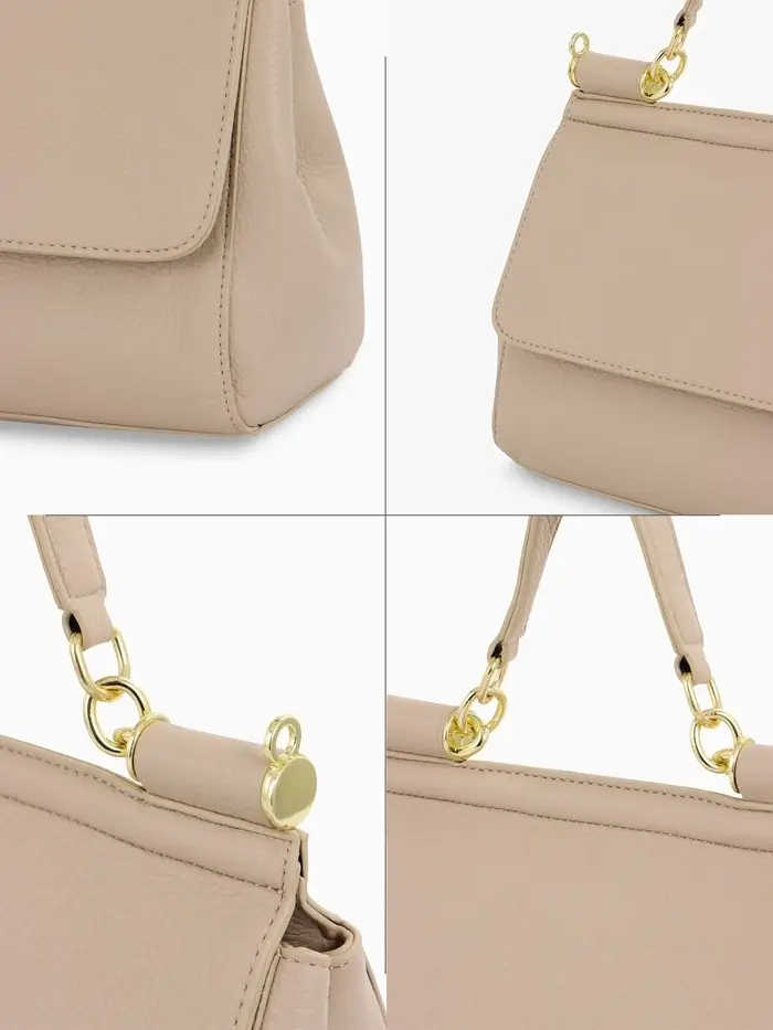 Благодаря размеру 25 х 9 х 17 см, сумка компактна, но достаточно вместительна, чтобы в ней можно было удобно разместить все необходимые мелочи. Полукаркасная конструкция и золотистая фурнитура подчеркивают аккуратный и продуманный дизайн, который дополняется клапаном на магните, обеспечивающим надежную защиту содержимого.